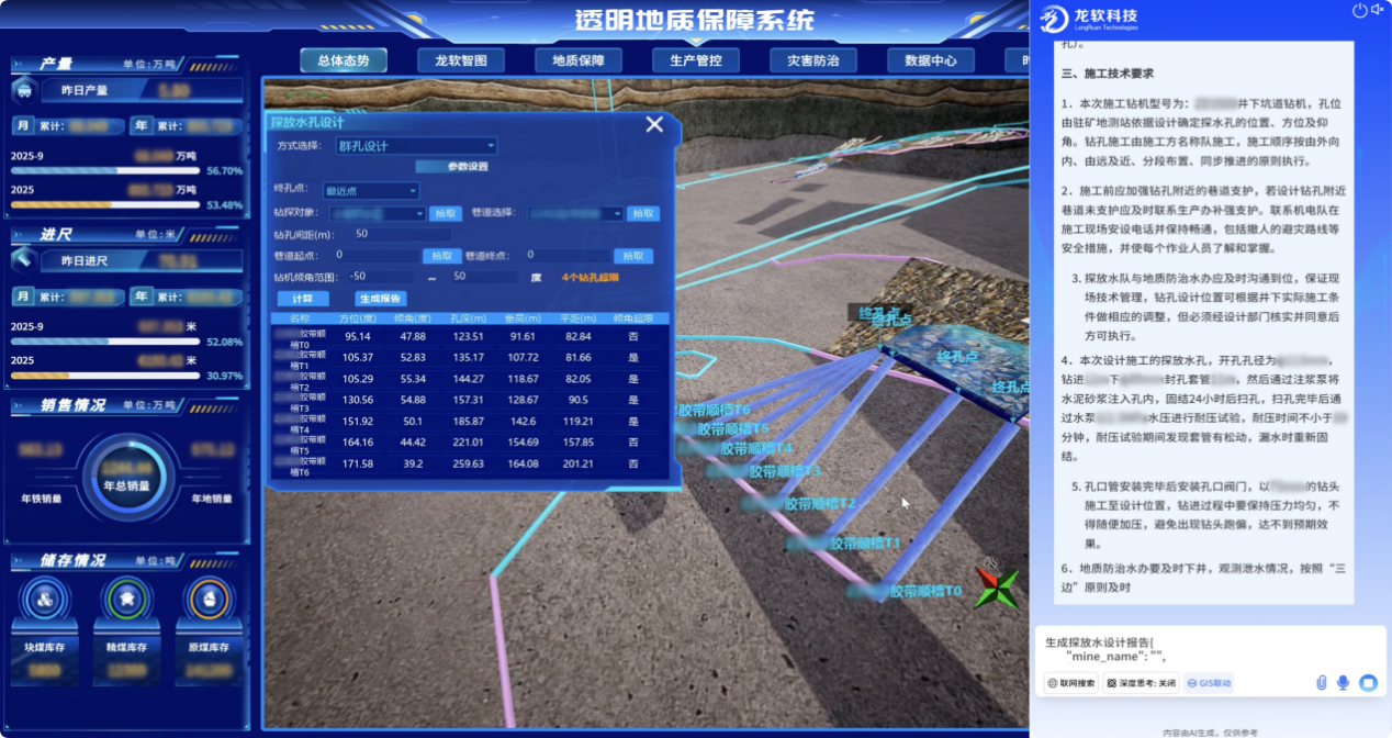 该平台实现了数据、图形和模型的一体化处理,支持煤矿地质、测量、通防、机电、生产等专业自动成图、同步建模和时空信息的高度共享和动态处理,有效破解了长期困扰行业的包括地质建模与更新在内的“卡脖子”关键技术难题。系统兼具的技术先进性与场景实用性,创新实现了时空信息云服务,在实现时空信息云服务的同时,深度融合了雷火电竞体育官网科技多年积累的煤矿GIS专业化应用成果,不仅全面推动了矿山安全生产业务的数字化转型,更以高精度三维模型为支撑,为煤矿智能采掘、智能通风和灾害预警提供了坚实的技术底座与可视化决策平台。